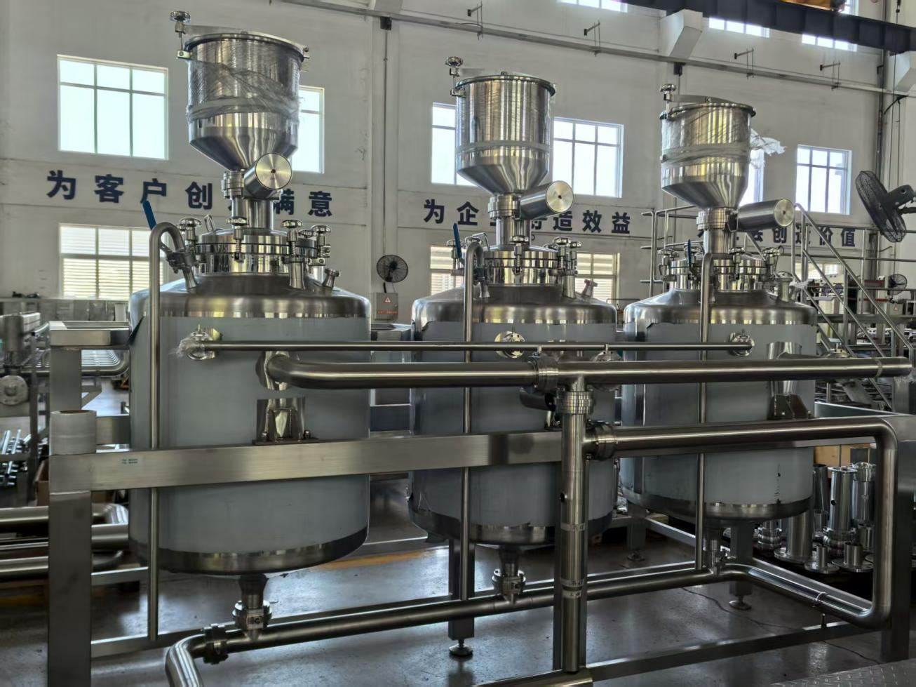3、該全自動(dòng)調(diào)配系統(tǒng):該全自動(dòng)調(diào)配系統(tǒng)采用防混閥閥陣與集成管路設(shè)計(jì),精準(zhǔn)調(diào)控進(jìn)料流量及溫度,具備自動(dòng)加料、自動(dòng)控溫、智能混合和在線清洗功能,通過(guò)稱(chēng)重-流量雙反饋精準(zhǔn)調(diào)配,可達(dá)到工藝需求的溶解、剪切、乳化等效果。系統(tǒng)運(yùn)行高效安全,杜絕交叉污染,符合衛(wèi)生標(biāo)準(zhǔn)。系統(tǒng)支持MES系統(tǒng)數(shù)據(jù)對(duì)接,采用觸控式人機(jī)界面,支持手動(dòng)/自動(dòng)模式切換及一鍵式全自動(dòng)操作;可實(shí)現(xiàn)生產(chǎn)數(shù)據(jù)自動(dòng)采集、記錄分析及曲線可視化功能。全自動(dòng)的操作節(jié)約生產(chǎn)日化產(chǎn)品的成本,并且通過(guò)控制裝置精準(zhǔn)實(shí)現(xiàn)自動(dòng)化調(diào)節(jié)操作,提高生產(chǎn)效率。